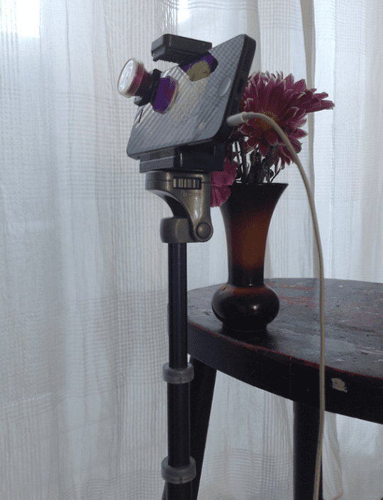 • Lollipod or appropriate support to provide stability. Normally the iPhone is fully gripped by the Lollipod mobile phone holder which has rubber grips and size adjusters. As you would expect you can tilt the Lollipod mobile phone holder as necessary but for my purposes I loosened the grip slightly and manually moved the iPhone within the holder. This wouldn’t be the recommended approach but I was in a carpeted indoor area and it made things that little bit quicker.